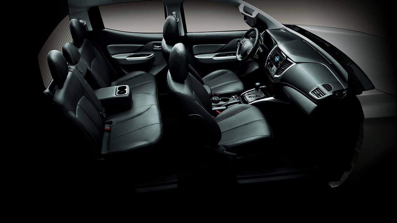 Bên cạnh đó, toàn bộ ghế của Mitsubishi Triton được bọc bằng da sang trọng, tích hợp với ghế lái chỉnh điện 8 hướng ôm sát hông và lưng. Hàng ghế sau với không gian rộng rãi đủ cho 3 người ngồi với tựa đầu và khoảng để chân vừa đủ. Ngoài ra, để tối ưu sự thoải mái cho người ngồi, phần tựa lưng được làm nghiêng ra sau. Đây chính là điểm khác biệt lớn mà các đối thủ trong cùng phân khúc không thể có.