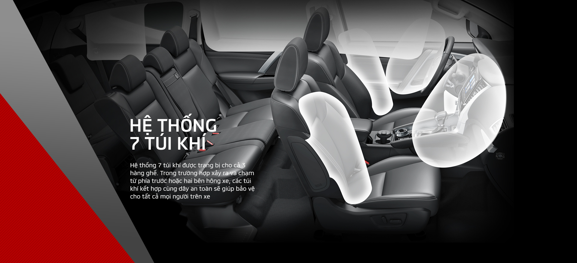 Hệ thống 7 túi khí an toàn cho tất cả hành khách ngồi trên xe.