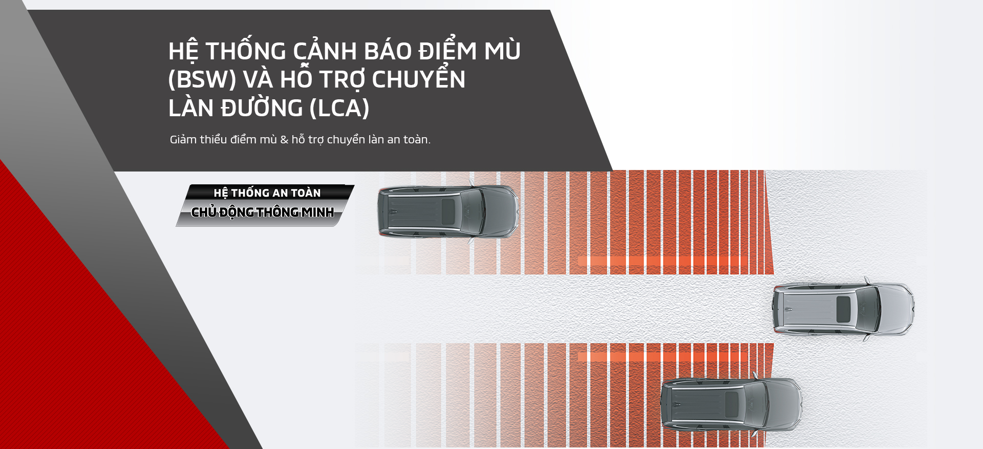 Hệ thống cảnh báo điểm mù (BSW) & Hỗ trợ chuyển làn đường (LCA).